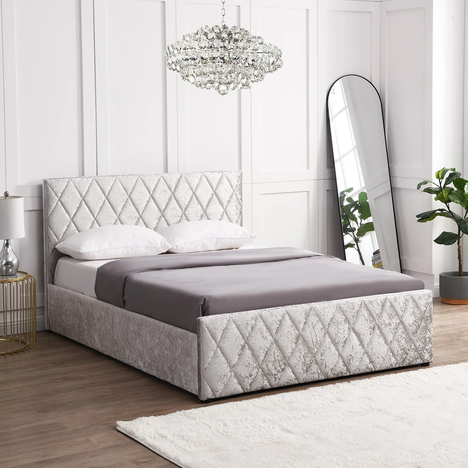 - A storage bed frame with discreet underbed space that can be accessed by gas lift from side.