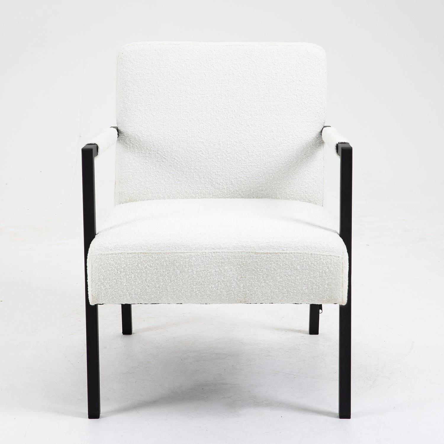 - Crafted with durable metal frame and luxury touch of boucle upholstery, the chair has padded seat and back for adding comfortable extra seating in your home.