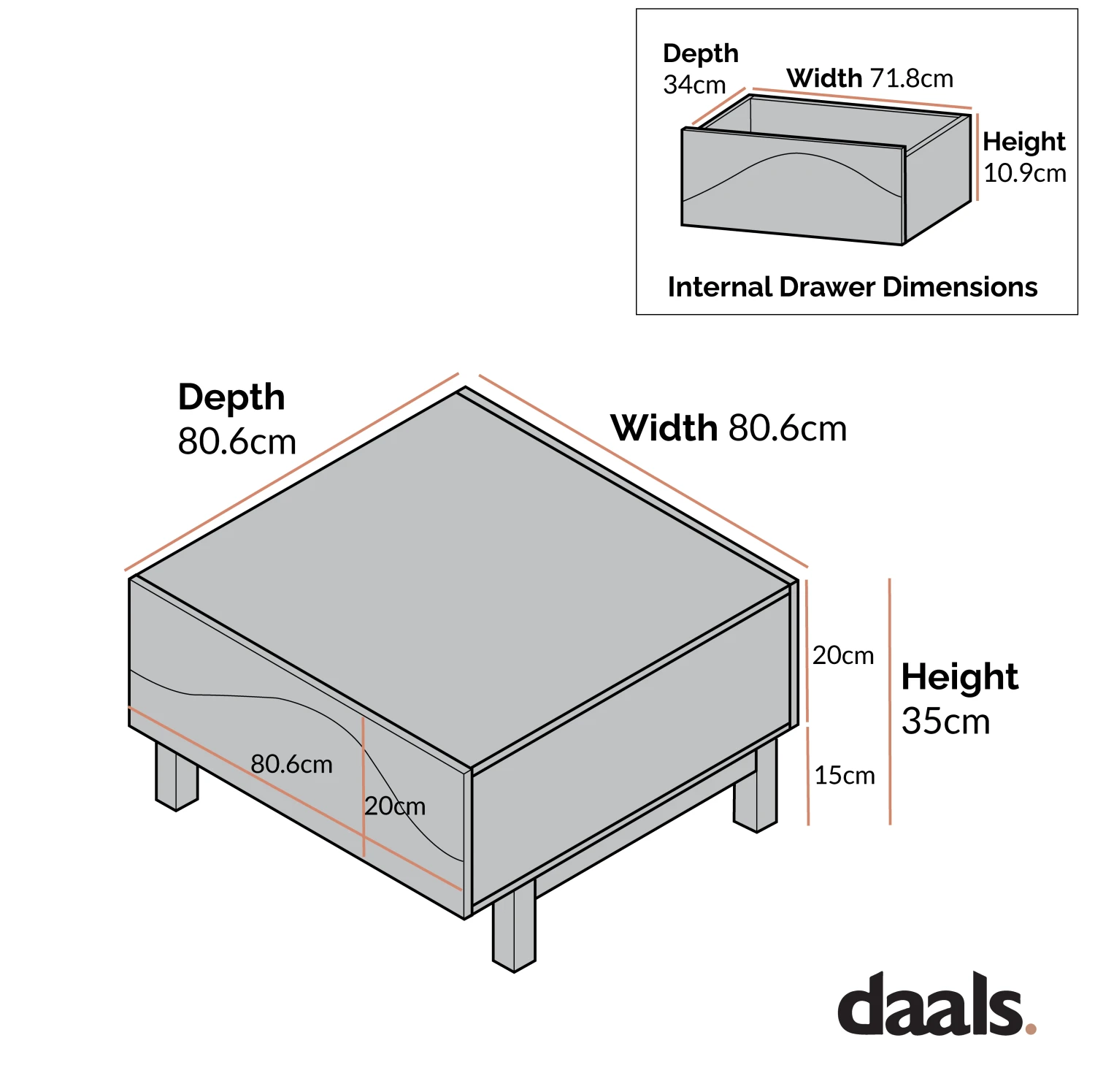 - The coffee table offers 2 drawers on metal runners that can be pulled on each side for clever discrete storage.