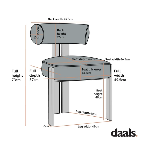- Size: W 49.5 x D 57 x H 73 cm. Seat height: 48 cm.